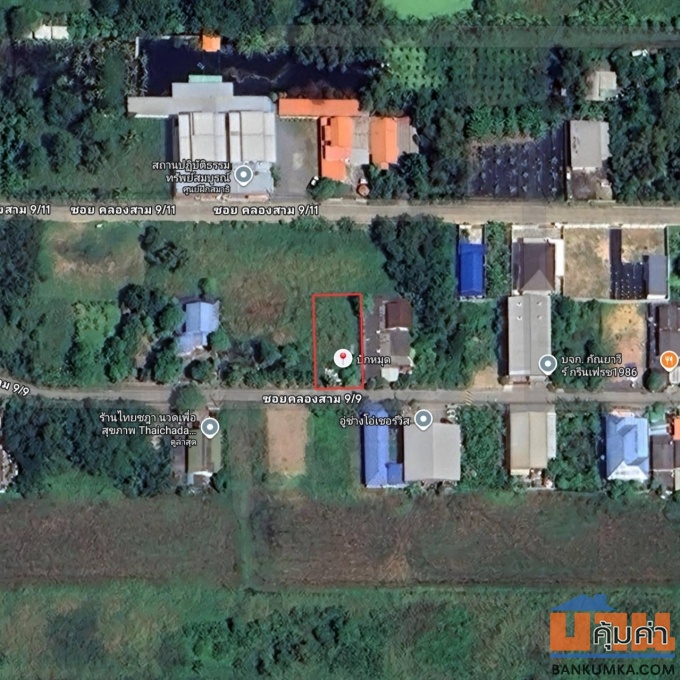 ขายที่ดินซอยคลองสาม 9/9 พื้นที่ 104 ตร.ว. สี่เหลี่ยมผืนผ้าสวย บรรยากาศ เงียบสงบ เป็นส่วนตัว โทร 0925519322 ขาย 1,900,000 บาท