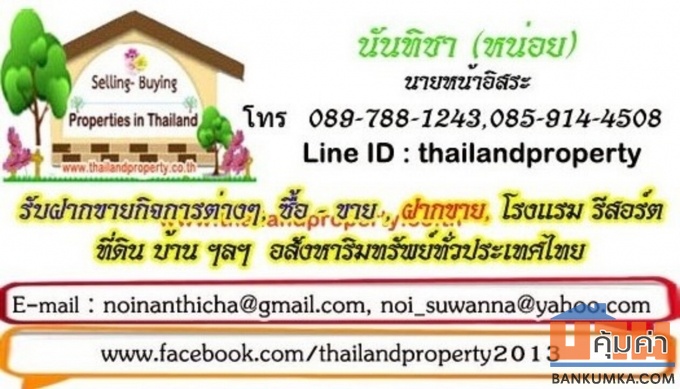 ศูนย์กลาง อสังหาฯ ทั่วไทย ฝากขาย เช่า บ้าน ตึกแถว ที่ดิน กิจการ กรุงเทพ หรือต่างจังหวัดแหล่งน่าสนใจ เช่น โรงแรม รีสอร์ท วิลล่า อพาร์เม้นท์ เกตส์เฮาส์ กิจการร้านค้าต่างๆ บ้านสวน คอนโดให้เช่า บ้านเช่า วิลล่า,บ้านพักตากอากาศ ตึกแถว,ทาวเฮาส์,ที่ดินติดทะเล,ที่ดินติดหาด,ที่ดิน,ที่ดินย่านสุขุมวิท,ที่ดินใกล้รถไฟฟ้า นันทิชา 089-788-1243 We're broker agency E-mail: