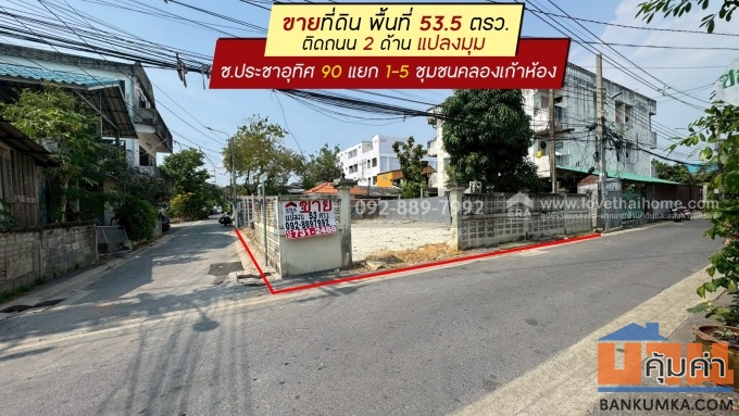 ขายที่ดิน ประชาอุทิศ90-1-8 ซอยชุมชนคลองเก้าห้อง พื้นที่ 51 ตรว. ติดถนนเมน แปลงมุม ขายเพียง 2.5 ล้านบาทเท่านั้น ขาย 2,500,000 บาท