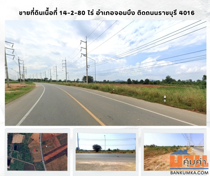 ขายที่ดินเนื้อที่ 14-2-80 ไร่ อำเภอจอมบึง ติดถนนราชบุรี 4016 เหมาะทำโครงการจัดสรร