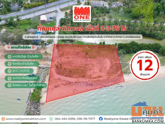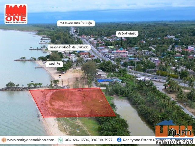 ที่ดินเปล่าติดทะเล หาดสันติสุขบ้านในถุ้ง อ.ท่าศาลา
