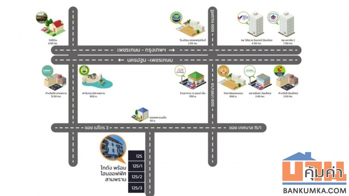 ขาย/ให้เช่า โกดังพร้อมโฮมออฟฟิศ 3 ชั้น 96.5 ตร.ว. สามพราน นครปฐม สร้างใหม่