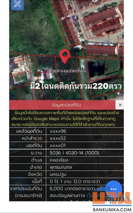 - ขนาดที่ดิน2 งาน 20 ตร.วา