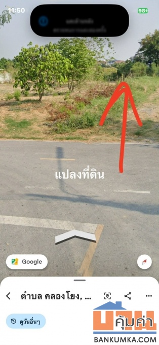 ที่ดินครุฑแดงพร้อมโอนน้ำไฟผ่านหน้าที่ดินถนนลาดยางใกล้ถนนเส้นหลัก