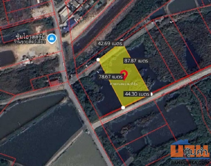 ขายเท่าราคาประเมินที่ดิน" บางเพรียง สมุทรปราการ แปลงมุม ติดถนน 2 ด้าน ที่ดิน 1-2-87 ไร่ ขาย 12,500 บาท/ตร.วา