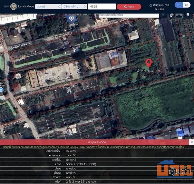 ขายที่ดินพร้อมสิ่งปลูกสร้าง – ทำเลทอง ใกล้วัดปรางค์หลวง บางใหญ่ นนทบุรี ขาย 62,880,000 บาท