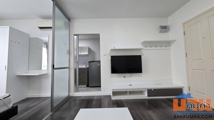 ชั้น 3 ตึก B ติดถนนสุขุมวิท พื้นที่ใช้สอยขนาด 30 ตารางเมตร ห้องเป็นสตูดิโอ แบบ1 ห้องนอน 1 ห้องน้ำ ห้องครัวมีประตูปิด ป้องกันเสียงและกลิ่นรบกวน