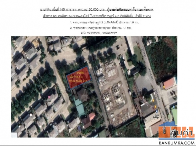 ขายที่ดินซอยไมตรีจิต 34 พื้นที่ 100 ตารางวา ถมแล้ว ขาย 1,200,000 บาท