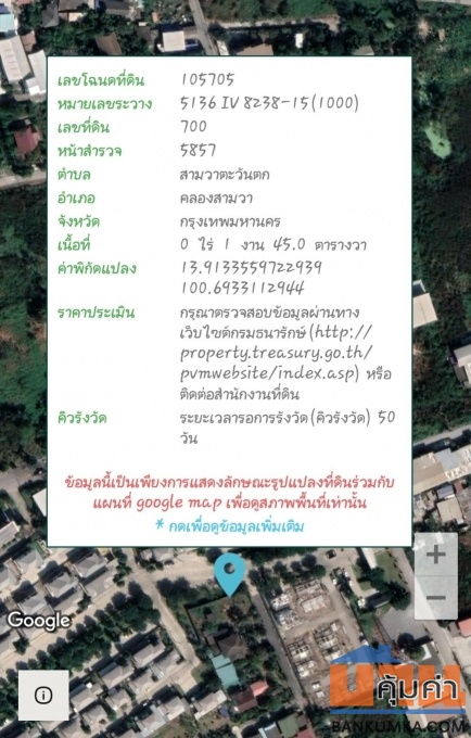 ขายที่ดิน ติดถนนไมตรีจิต แขวงสามวาตะวันออก เขตคลองสามวา กรุงเทพมหานคร ขาย 46,552,000 บาท
