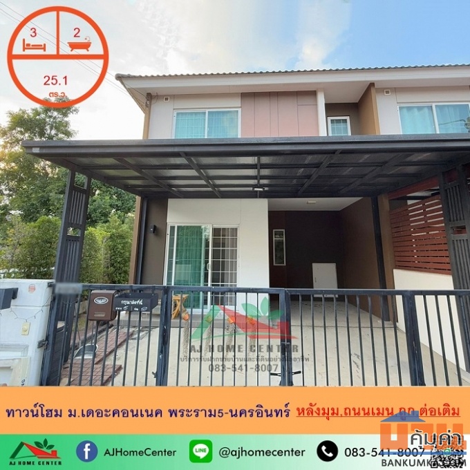 ขายถูก2.8ล้าน ทาวน์โฮม25.1ตรว. หลังมุม ม.เดอะคอนเนค พระราม5-นครอินทร์ ต่อเติมพร้อมอยู่