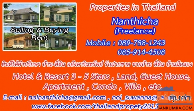 Sales-Rent-Lease properties in Thailand Nanthicha Freelance Broker who specializes in properties sales in Thailand. selling properties namely Hotel ,Land, Resort, Guest House, Apartment ,Condo,House, Villa etc.I'd assist you by serving an accuracy information properties.