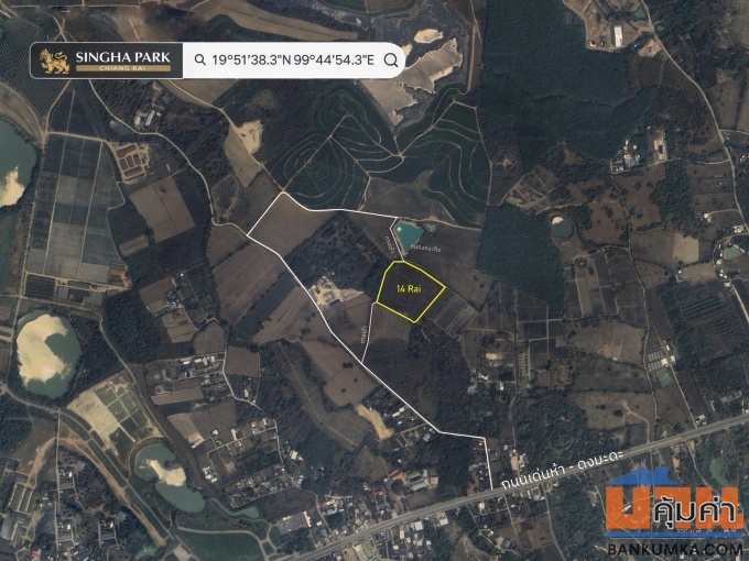 ขายที่ดินพรีเมี่ยมติด Singha Park Chiang Rai ขนาด 8 ไร่ + 6 ไร่ ( รวม 14 ไร่ ) น้ำไม่ท่วม จังหวัดเชียงราย