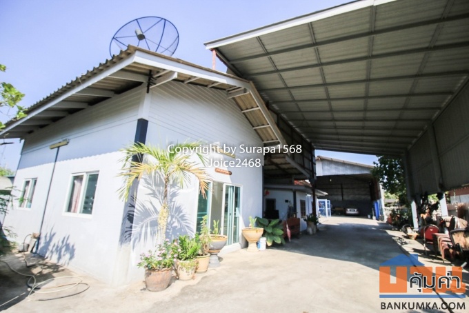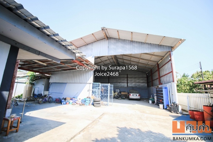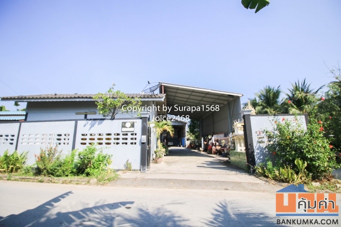 ขายที่ดิน พร้อมโกดัง และบ้านตึกชั้นเดียว 158.5 ตร.ว บ้านแพ้ว หลักสาม หลังมุม
