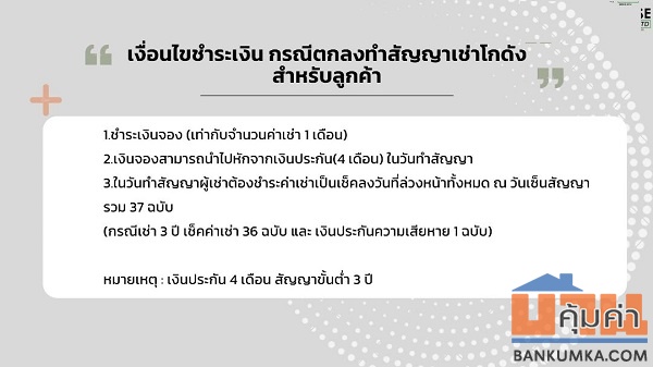 • เงินประกัน 4 เดือน สัญญาขั้นต่ำ 3 ปี