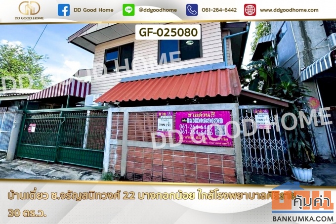 บ้านเดี่ยว ซ.จรัญสนิทวงศ์ 22 บางกอกน้อย ใกล้โรงพยาบาลศิริราช