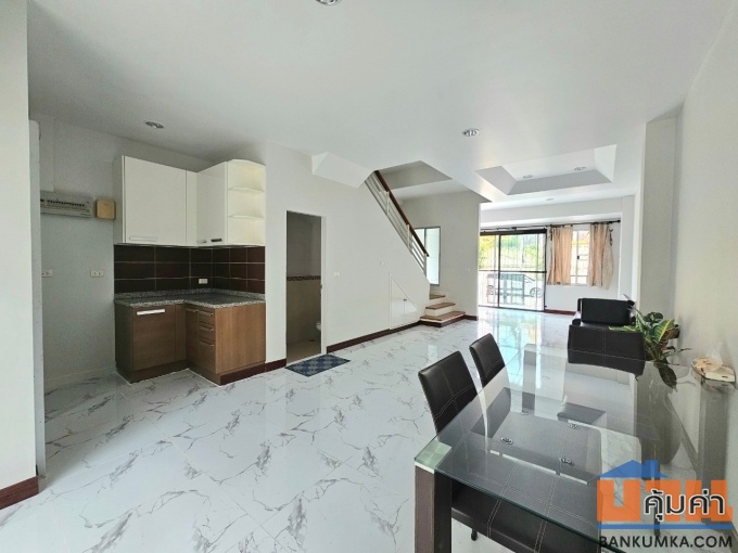 ให้เช่าบ้านทาวน์โฮมหมู่บ้านกลางเมือง ศรีนครินทร์ใช้สอย 260 ตรม 3 ห้องนอน3 ห้องน้ำ 5 แอร์ 2 ห้องนั่งเล่น ห้องครัว เฟอร์ เช่า 38,000 บาท/เดือน