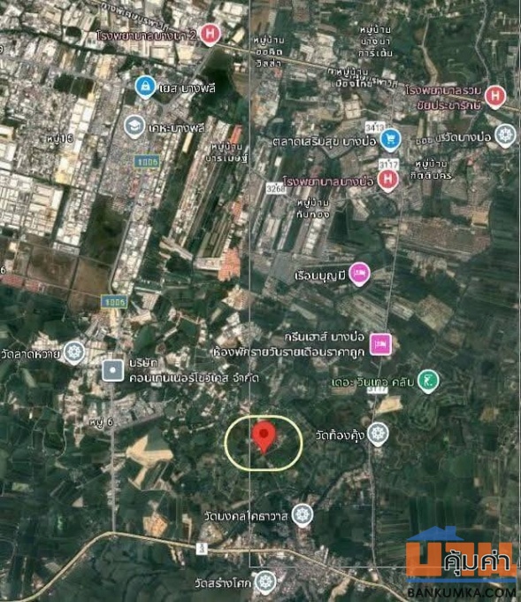 บางเพรียง สมุทรปราการ แปลงมุม ติดถนน 2 ด้าน ที่ดิน 1-3-99 ไร่ ( 799 ตรว.) ขาย 11,250 บาท/ตร.วา