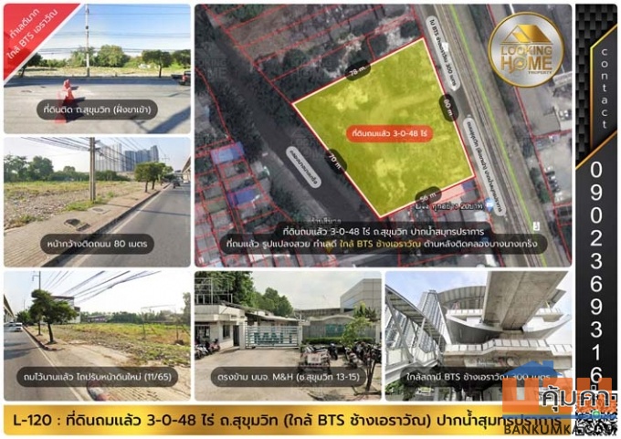 ขายที่ดิน 66 ตรว เหมาะสร้างบ้าน โฮมออฟฟิศ ถนนสุขุมวิท อิมพลีเรียลสำโรง วัดด่านสำโรง ตลาดสำโรง ขาย 7,260,000 บาท