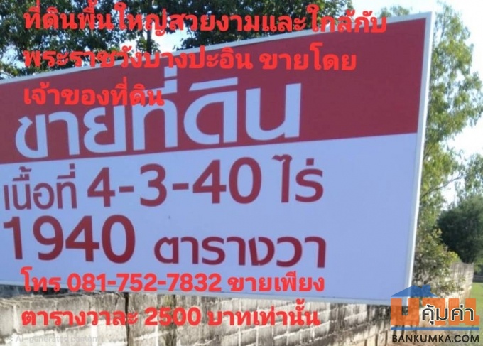 ขายที่ดิน 4 ไร่ ติดถนนสายเอเชีย ตรงข้ามนิคมไฮเทค บางปะอิน ขาย 37,500,000 บาท