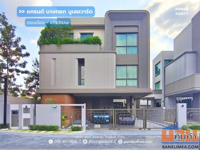ขาย/ให้เช่า บ้านเดี่ยว 3 ชั้น แกรนด์ บางกอก บูเลอวาร์ด ดอนเมือง-แจ้งวัฒนะ (ขนาด 76 ตร.ว.) ระดับ Luxury เป็นบ้านตัวอย่างตกแต่งพร้อมเข้าอยู่ ติดถนนศรีสมาน ใกล้ทางด่วนอุดรรัถยา ปากเกร็ด นนทบุรี : Grand Bangkok Boulevard Donmueang-Chaengwattana