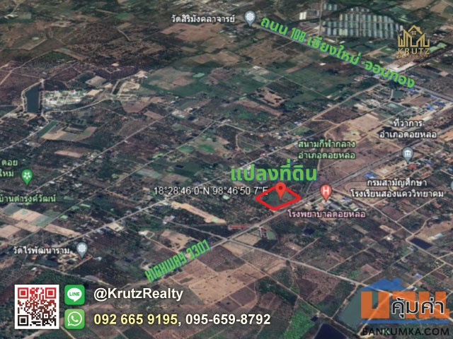 ที่ดินแปลงสวย ทำเลดีมาก โอกาสการลงทุนที่มีศักยภาพ ตรงข้ามหน่วยงานราชการอำเภอดอยหล่อ ทั้ง โรงพยาบาลดอยหล่อ, ที่ว่าการอำเภอดอยหล่อ, สถานีตำรวจดอยหล่อ, สนามกีฬากลางอำเภอดอยหล่อ, ใกล้สิ่งอำนวยสะดวกทุกอย่าง