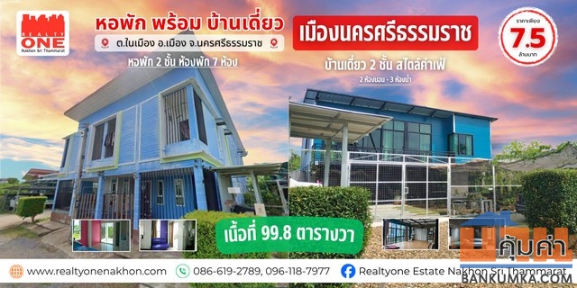 หอพักพร้อมบ้านเดี่ยว 2 ชั้น ใจกลางเมืองนครศรีธรรมราช