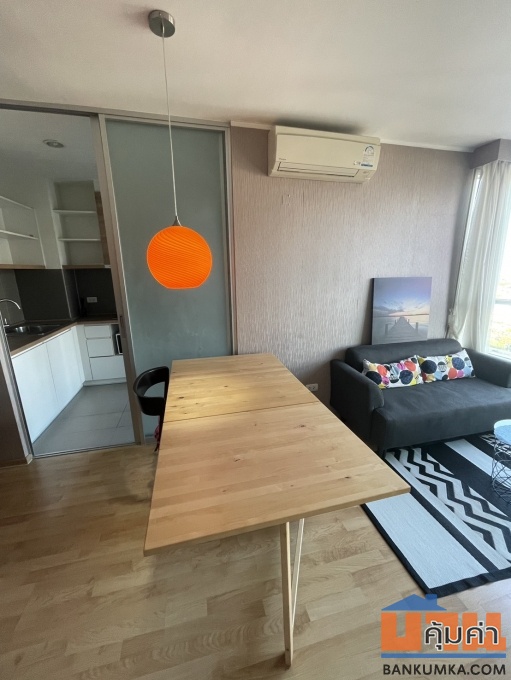 - 1 ห้องรับแขก หน้าต่างกว้าง กระจกบานใหญ่ มีม่าน 2 ชั้น (ม่านโปร่ง และม่านม้วนกันยูวี) กระจกตัดมุมมองเห็นวิวกว้าง บิ้วอินโต๊ะวางทีวี ตู้เก็บของ ตู้โชว์ ตู้วางรองเท้าพร้อมกระจก มีโต๊ะทานข้าวพร้อมโคมไฟ