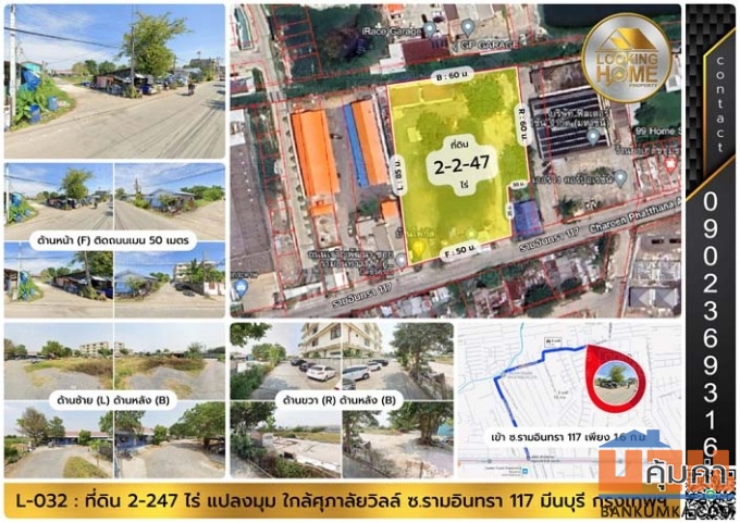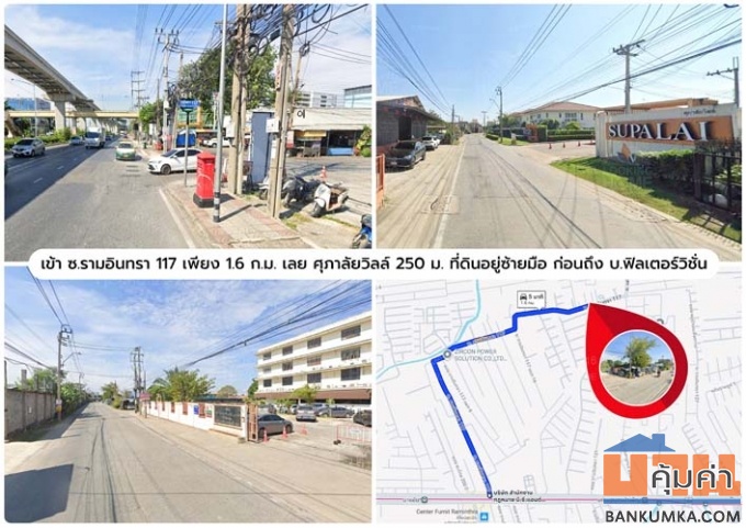 - เข้า ซ.รามอินทรา 117 เพียง 1.6 กิโลเมตร เลย ม.ศุภาลัยวิลล์ 250 เมตร