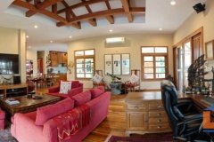 ตัวบ้านออกแบบเป็น บ้านชั้นเดียว มีห้องนอนกว้างขวาง 2 ห้อง พร้อมระเบียงส่วนตัวและห้องน้ำในตัวทุกห้อง รวมถึงห้องน้ำแยกอีกครึ่งห้อง พื้นที่ภายในโปร่งโล่งด้วยเพดานสูง และประตูกระจกบานใหญ่ฝั่งทิศตะวันตกที่เปิดรับแสงธรรมชาติและลมเย็นได้เต็มที่