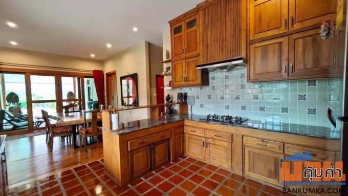 The property seamlessly blends traditional Northern Thai architectural elements, such as a distinctive roof and custom tiles, with modern amenities, including premium quality bathroom fixtures, solid teak floors and cabinets, porceline bathroom tiles and full electronic connectivity.