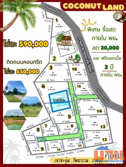 ขายที่ดิน 11 ไร่ 41 ตร.ว. ติดถนน โพธาราม- จังหวัดราชบุรี ขาย 2,166,257 บาท