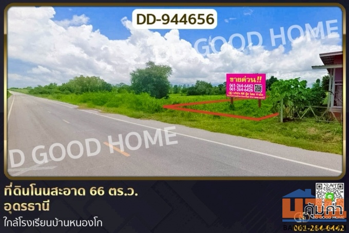ที่ดินโนนสะอาด 66 ตร.ว.อุดรธานี ใกล้โรงเรียนบ้านหนองโก