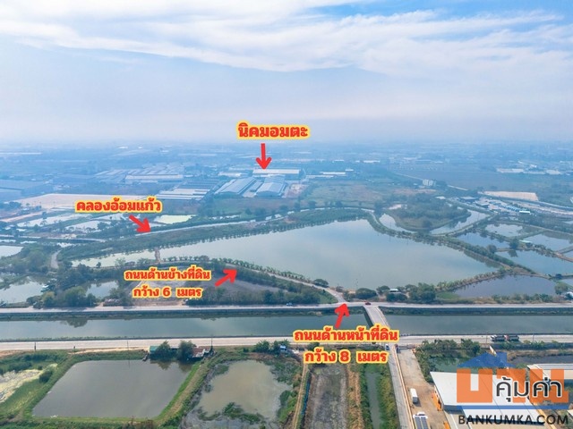 ด้านท้ายแปลงที่ดินติด คลองอ้อมแก้ว คลองนี้มีขนาดใหญ่มาก มีความกว้าง ประมาณ 25 เมตร มีน้ำตลอดทั้งปี ปัจจุบันที่ดินเป็น บ่อเลี้ยงปลา