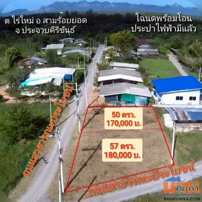 ขายที่ดินราคาถูก เนื้อที่ 50 ตรว. ราคา 170,000 บ. บ้านหนองจิกพัฒนา ต.ไร่ใหม่ อ.สามร้อยยอด จ.ประจวบคีรีขันธ์