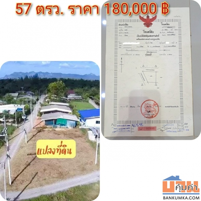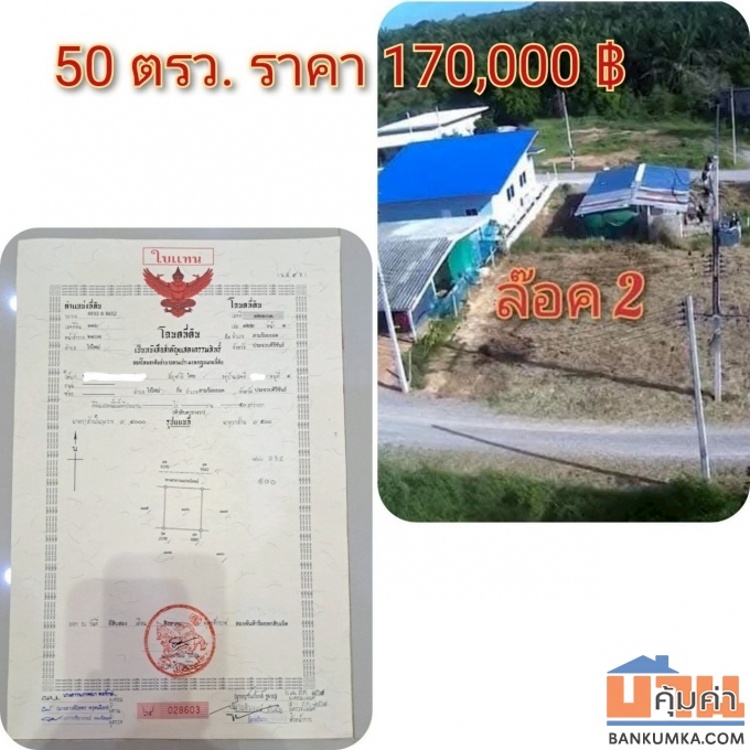 ** ล๊อคที่ 2 เนื้อที่ 50 ตรว. ราคาเพียง 170,000 บาท ติดถนน 2 ด้าน