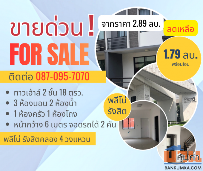 ทาวน์เฮ้าส์ 2 ชั้น พลีโน่ รังสิตคลอง 4 วงแหวน
