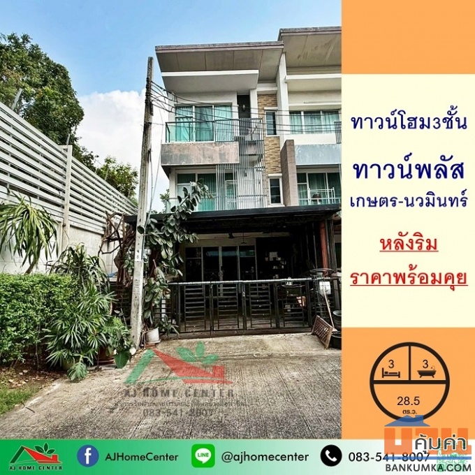 ขายทาวน์โฮม3ชั้น 28.5ตรว. หลังริม ม.ทาวน์พลัส เกษตร-นวมินทร์ ราคาพร้อมคุย