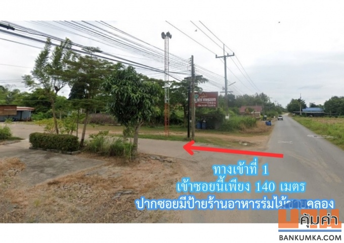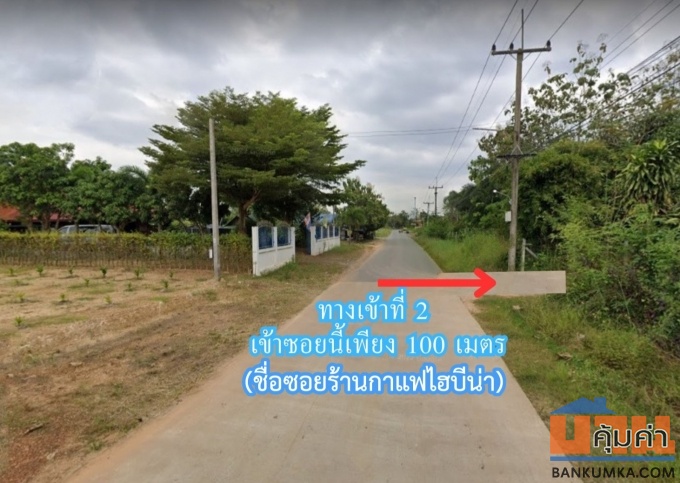 และสามารถเข้าทางด้านข้างที่ดินได้ โดยเข้าซอยที่มีร้านกาแฟ “ไฮบีน่า” ไปประมาณ 140 เมตร ซึ่งทางเข้าทั้ง 2 ซอยเป็นถนนคอนกรีตกว้าง 5 เมตร