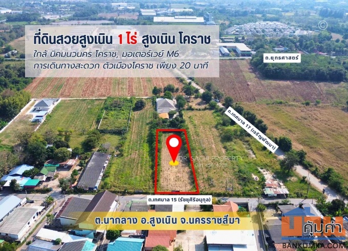 #ขายที่ดินสูงเนิน 1 ไร่ ทำเลดี ใกล้ นิคมฯนวนคร ต.นากลาง อ.สูงเนิน จ.นครราชสีมา