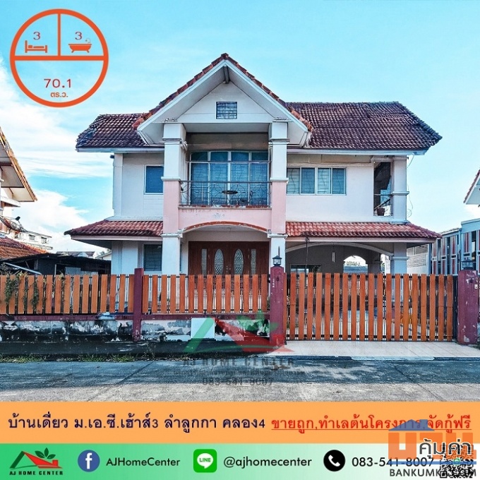 H1204 ขายบ้านเดี่ยว 102 ตารางวา ซอยบุญคุ้ม ลำลูกกาคลอง1 ติดถนนสาธารณะกว้าง 12 เมตร เหมาะพักอาศัยหรือทำธุกิจ ขาย 6,500,000 บาท