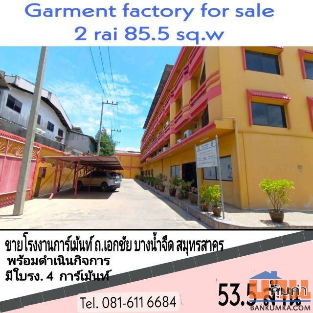 ขายโรงงานมือหนึ่งพร้อมใช้ นาดี-เลียบคลองสี่วาพาสวัสดิ์ สมุทรสาคร 1 ไร่ 1,720 ตรม.ขอใบรง.4 ได้ ใกล้เอกชัย-พระราม2 โรงงานส ขาย 24,500,000 บาท