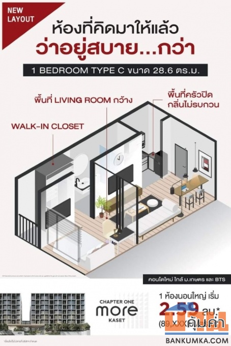 CM04402 ขายดาวน์ คอนโด แชปเตอร์วัน มอร์ เกษตร Chapter One More Kaset คอนโดพร้อมอยู่เดือนมีนาคม ปี 2569 ซอยพหลโยธิน 40 แยก 1 แขวงแสนานิคม เขตจตุจักร กทม.