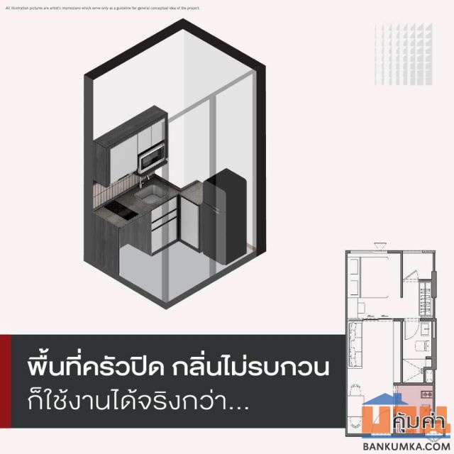 - ชุดครัว Built-in พร้อมเตาไฟฟ้า และเครื่องดูดควันแบบนอกอาคาร