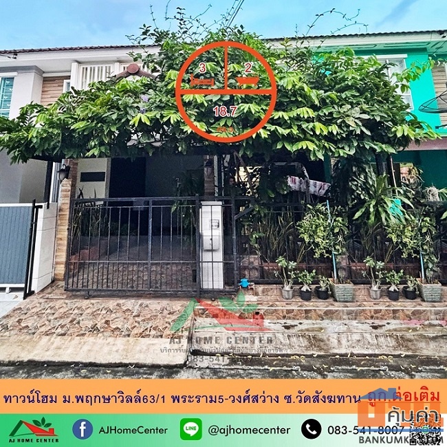 ขายถูก2.39ล้าน ทาวน์โฮม18.7ตรว. ม.พฤกษาวิลล์63/1 พระราม5-วงศ์สว่าง ซ.วัดสังฆทาน ต่อเติมพร้อมอยู่