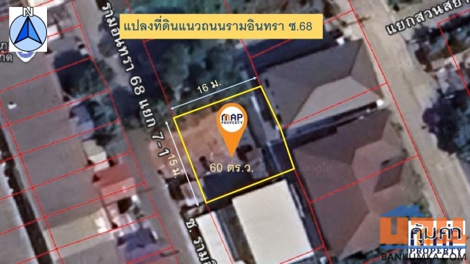- เข้าออกสะดวก จากปากซอยรามอินทรา 68 เพียง 500 ม. ถนนซอยผ่านหน้าแปลงที่ดินไม่ตัน