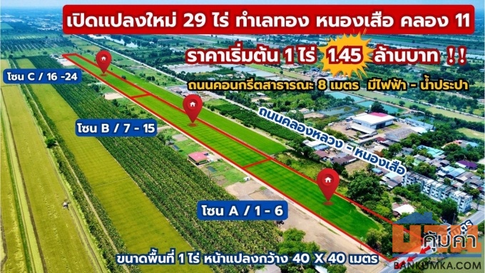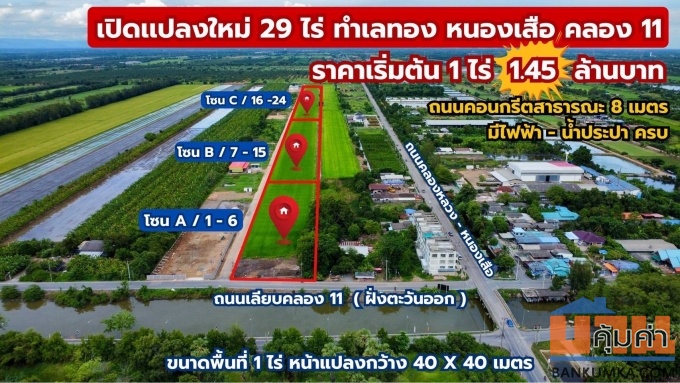 ขายที่ดินเปล่า คลอง 8 ต.บึงซำอ้อ อ.หนองเสือ จ.ปทุมธานี ขาย 3,500,000 บาท