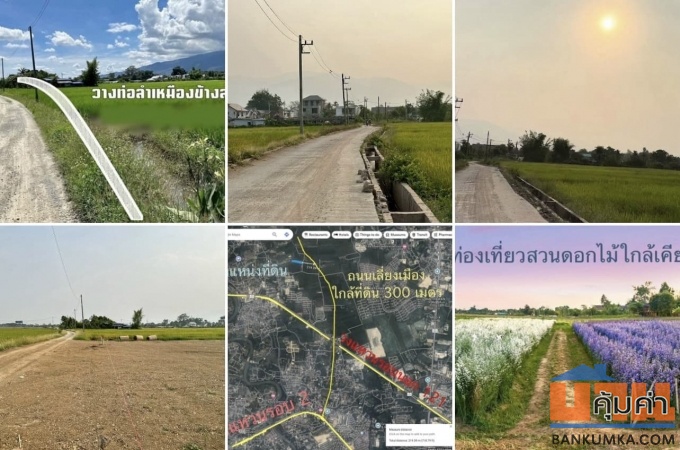 - The land is in a good location on a future. Opposite the land is a rice field. About 190 meters away, there is a Mae Rim bypass road -> the third ring road -> the second ring road cutting through.