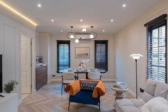 ภายในบ้านตกแต่งเฟอร์นิเจอร์สไตล์ Mid-Century มีความโค้งมนเล่นกับแสงธรรมชาติและสีสันสบายตา ให้ความรู้สึกอบอุ่น เรียบง่าย มองไม่เบื่อ