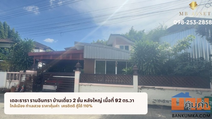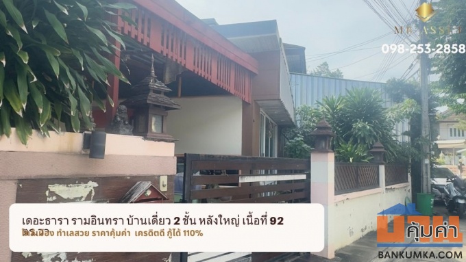 ขายบ้านเดี่ยว เดอะธารา รามอินทรา 2 ชั้น 92 ตร.วา ซอย พระยาสุเรนทร์ 35 เขตคลองสามวา กรุงเทพฯ ลดทันที 700,000 บาท