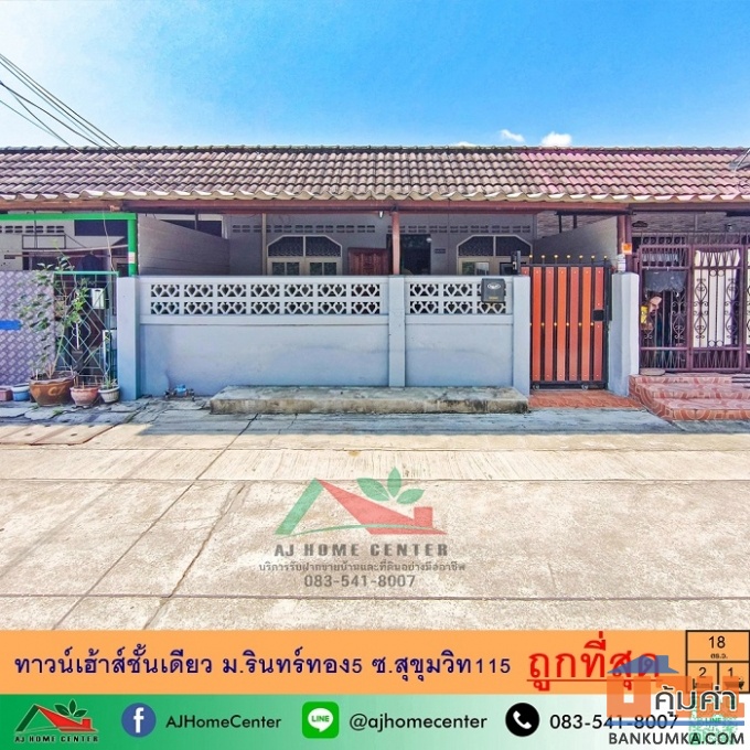 ขายทาวน์เฮ้าส์ 2 ชั้น 20 ตรว. ม.พนาสนธิ์แพรกษา ทำเลดีพร้อมอยู่ เข้าซอยเพียง 450 ม. ขาย 1,700,000 บาท